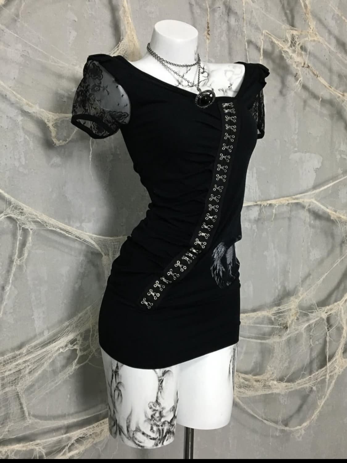 DIG DEEP 디그딥 십자큐빅 해골자수 후드 긴팔원피스 펑크y2k갸루