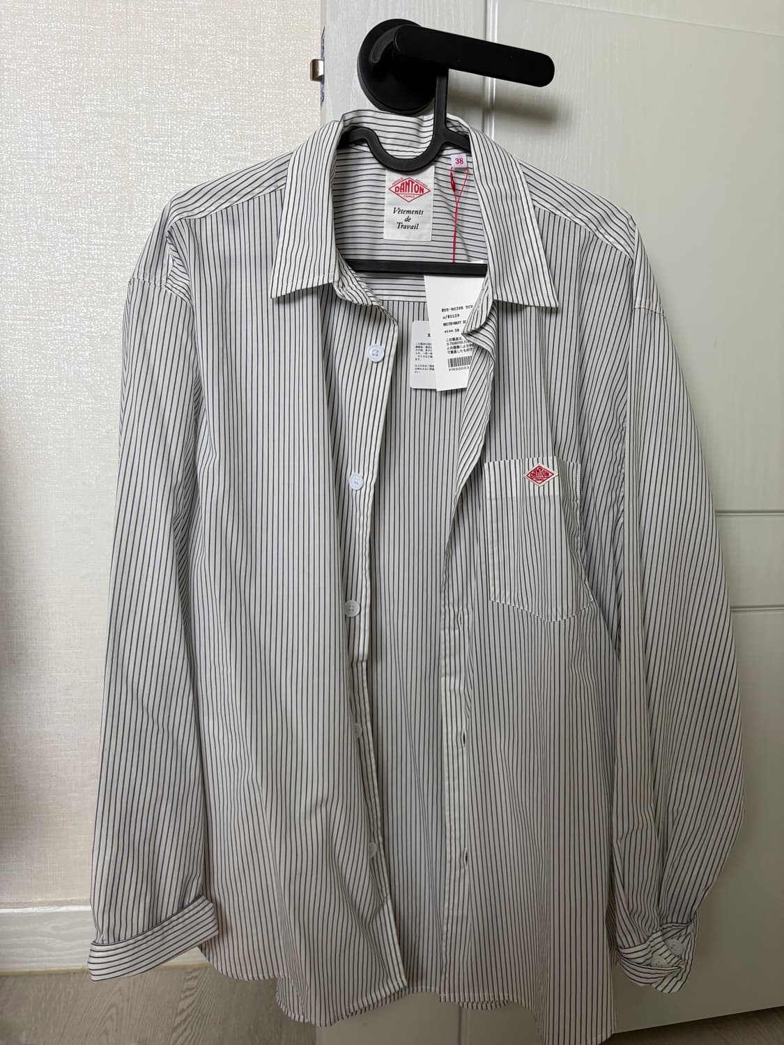 단톤 스트라이프 셔츠 남녀공용입니다 택 그대로 새제품입니다 사이즈 38로 55-66 여유로움 주머니 있음