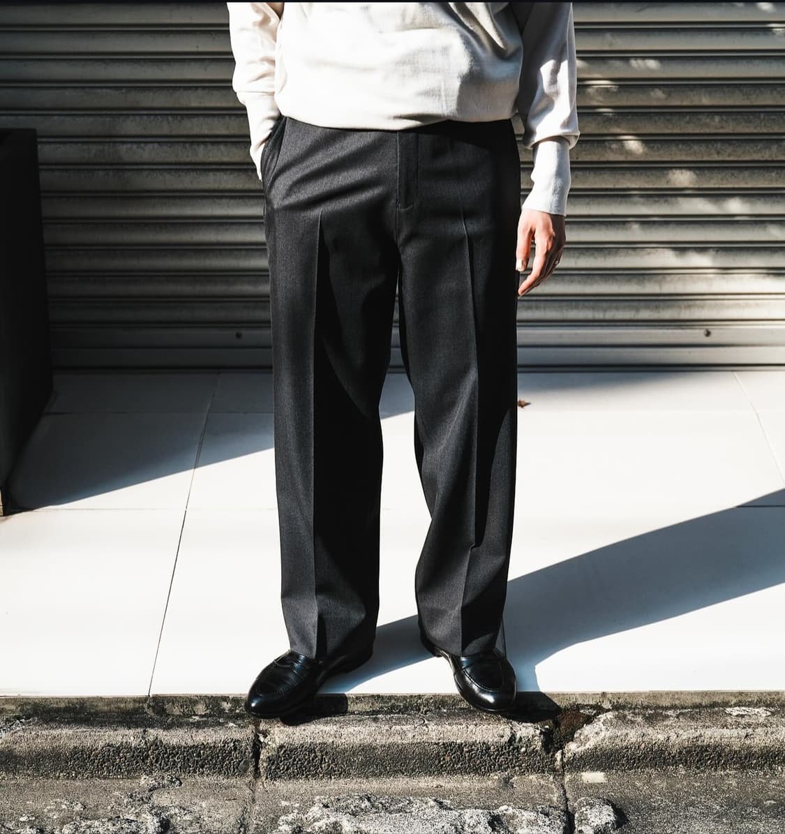 아프레쎄 24aw 트라우저 슬랙스 컬러 : 차콜 사이즈 : 2 택 보유중 super 130's wool 허리에 레더 파이핑이 매력적인 트라우저입니다. 네고교환사이즈문의 답장 안합니다