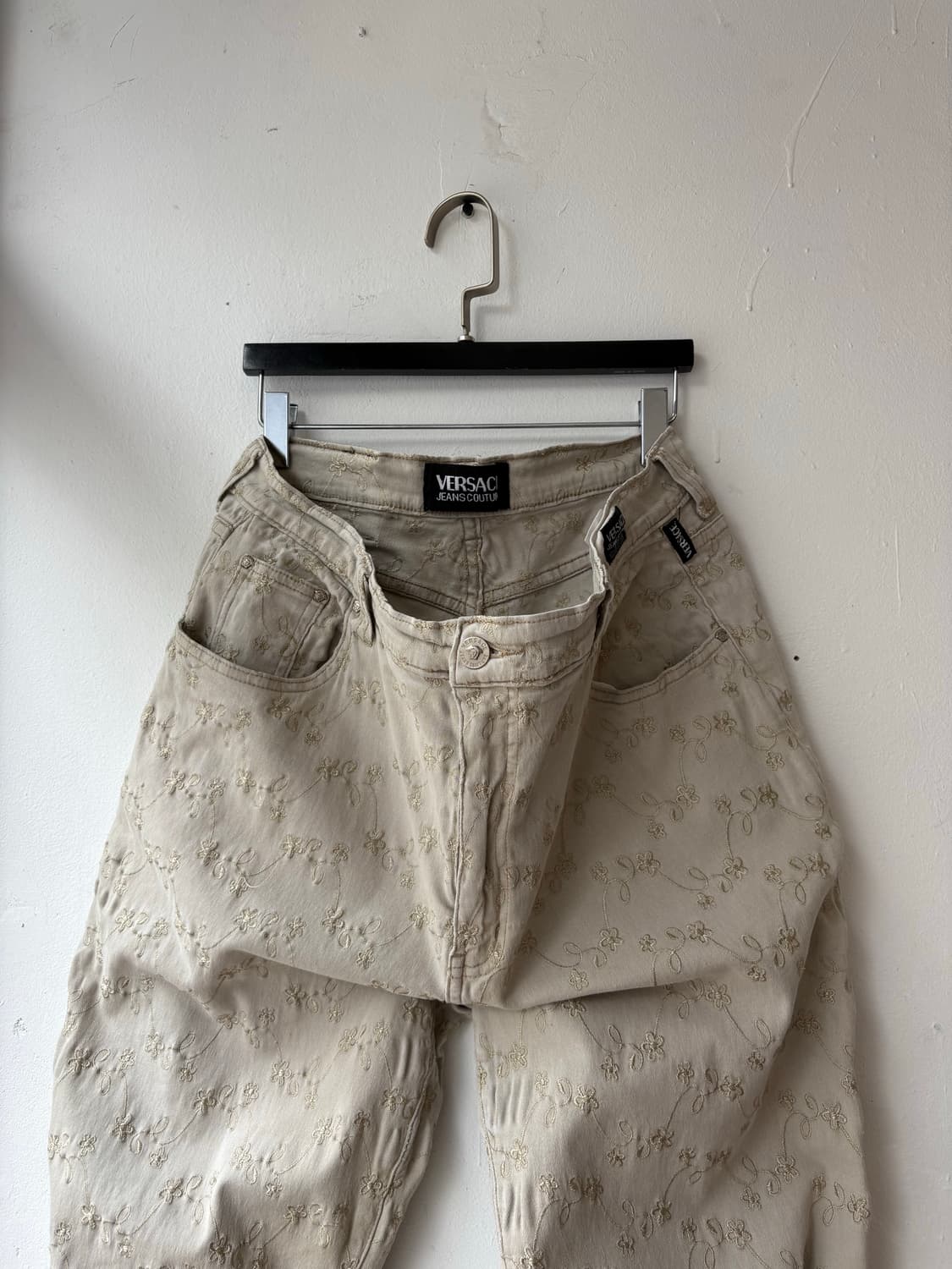 90s Versace Jeans Couture flower 팬츠 - condition 9/10 - 허리 40 밑위 31 허벅지 30 기장 104 밑단 20