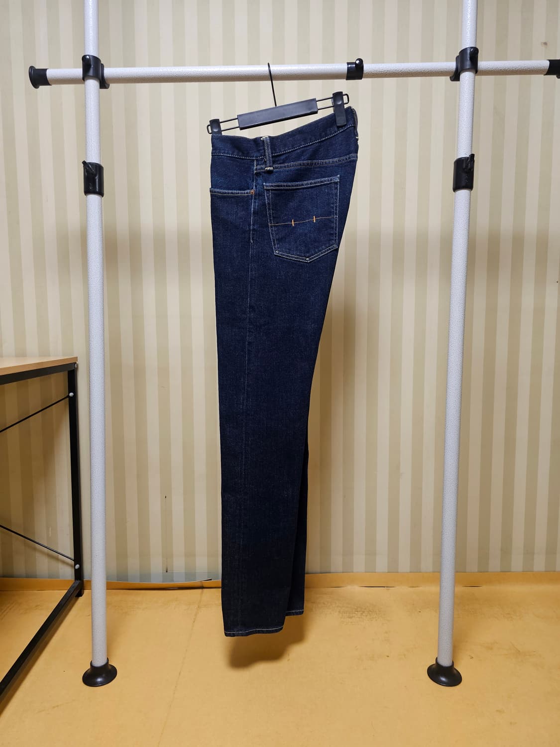 폴로 설리반 팬츠 다크 인디고 입니다. 양질의 헤어리한 데님 원단이 탄탄하고 드라이한 착용감이 좋습니다. 다크 인디고 컬러가 웨어러블한 활용도로 굿입니다. 정사이즈33 추천 허리43.5 밑위25 허벅지31 밑단19 총장107 코튼98 엘라스틴2 네고, 택포문의 정중히 차단합니다.