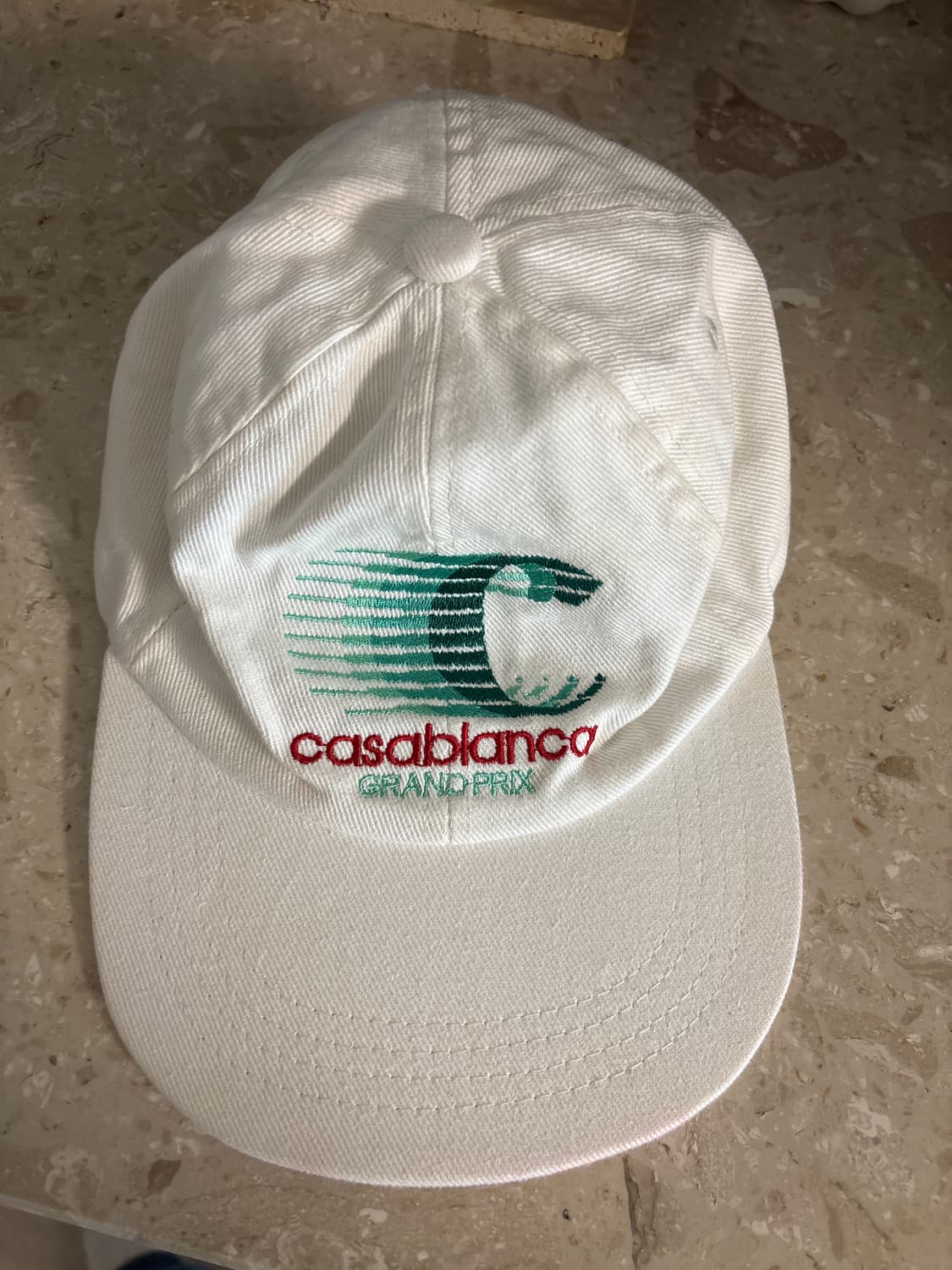 카사블랑카 모자입니다. 생활오염도 있고 빨간 에코백에 넣었는데 캡 앞쪽에 살짝 붉은 끼도 있습니다. 착용하면 티는 생각보다 안납니다.