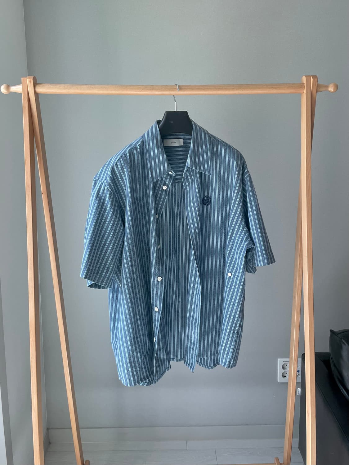 제품명 SHORT SLEEVE SEERSUCKER SHIRT NAVY_M_UDSH4B324N2 사이즈 (표기) XL 실측 (cm) 어깨 59 / 가슴 73 / 소매 29 / 총장 83 제품설명 던스트의 시어서커 반팔 셔츠입니다. 시어서커 특유의 올록볼록한 원단감 덕분에 피부에 달라붙지 않아 한여름에도 정말 시원하게 착용하기 좋습니다. 네이비 스트라이프 패턴이 깔끔하면서도 가슴 자수 디테일이 은은한 포인트가 되어줍니다. 오버한 실루엣이라 단독으로 입어도 좋고, 이너 위에 가볍게 걸쳐도 자연스럽게 떨어지는 핏이 매력적입니다. 전체적으로 컨디션 좋습니다.