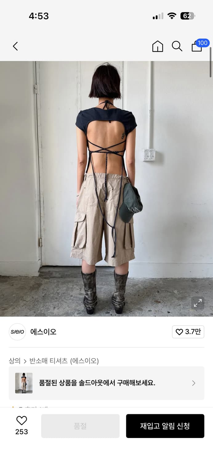 에스이오 OPEN BACK CAP SLEEVE TOP ASH BLACK 너무 이뻐서 구매했지만 한번도 못입고 보관중입니다 현재 품절이에요 정가 68000