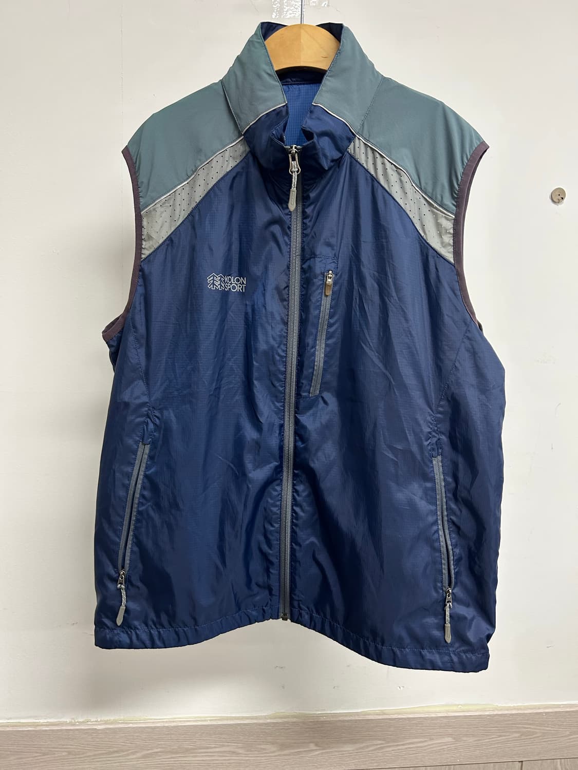 코오롱스포츠 남성 경량 조끼입니다. 활동하기 편한 디자인으로 간절기에 입기 좋아요. 가볍고 편안해서 등산이나 캠핑 등 야외 활동 시 활용하기 좋습니다. 105 사이즈이며, 블루와 그린 색상이 조화롭게 디자인되었습니다. 가슴단면 55 총기장 67 정도됩니다