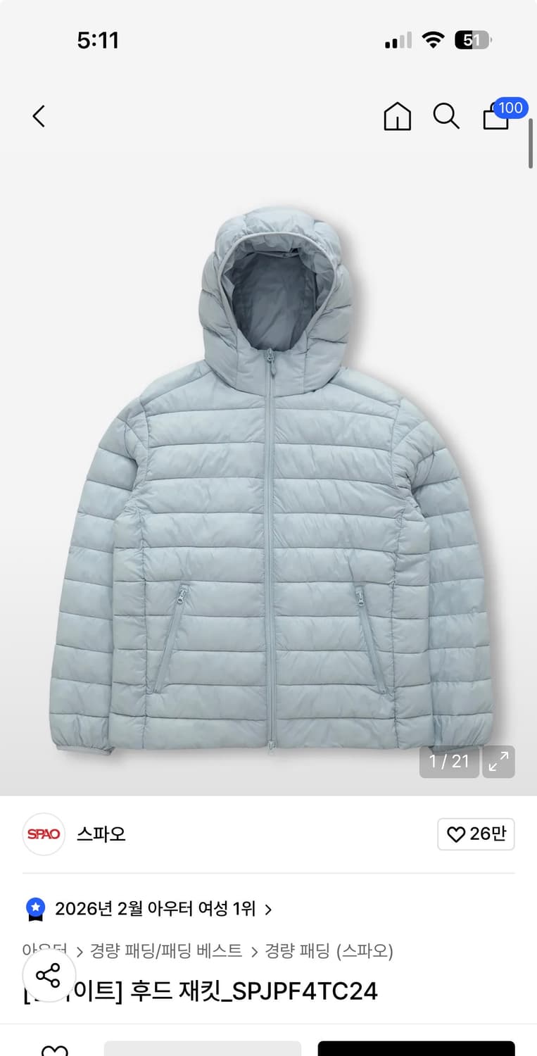 스파오 [씬라이트] 후드 재킷_SPJPF4TC24 시착 후 보관중입니다 상태 좋아요 정가 59000