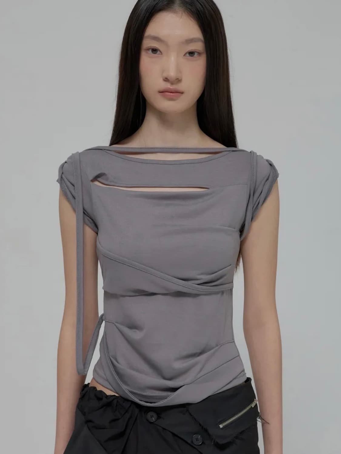 플레어업 티셔츠 Draped Strap Roll-Up T-Shirt