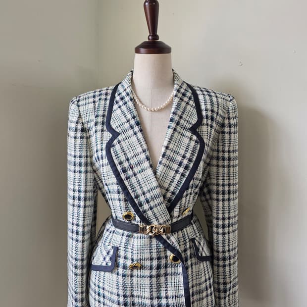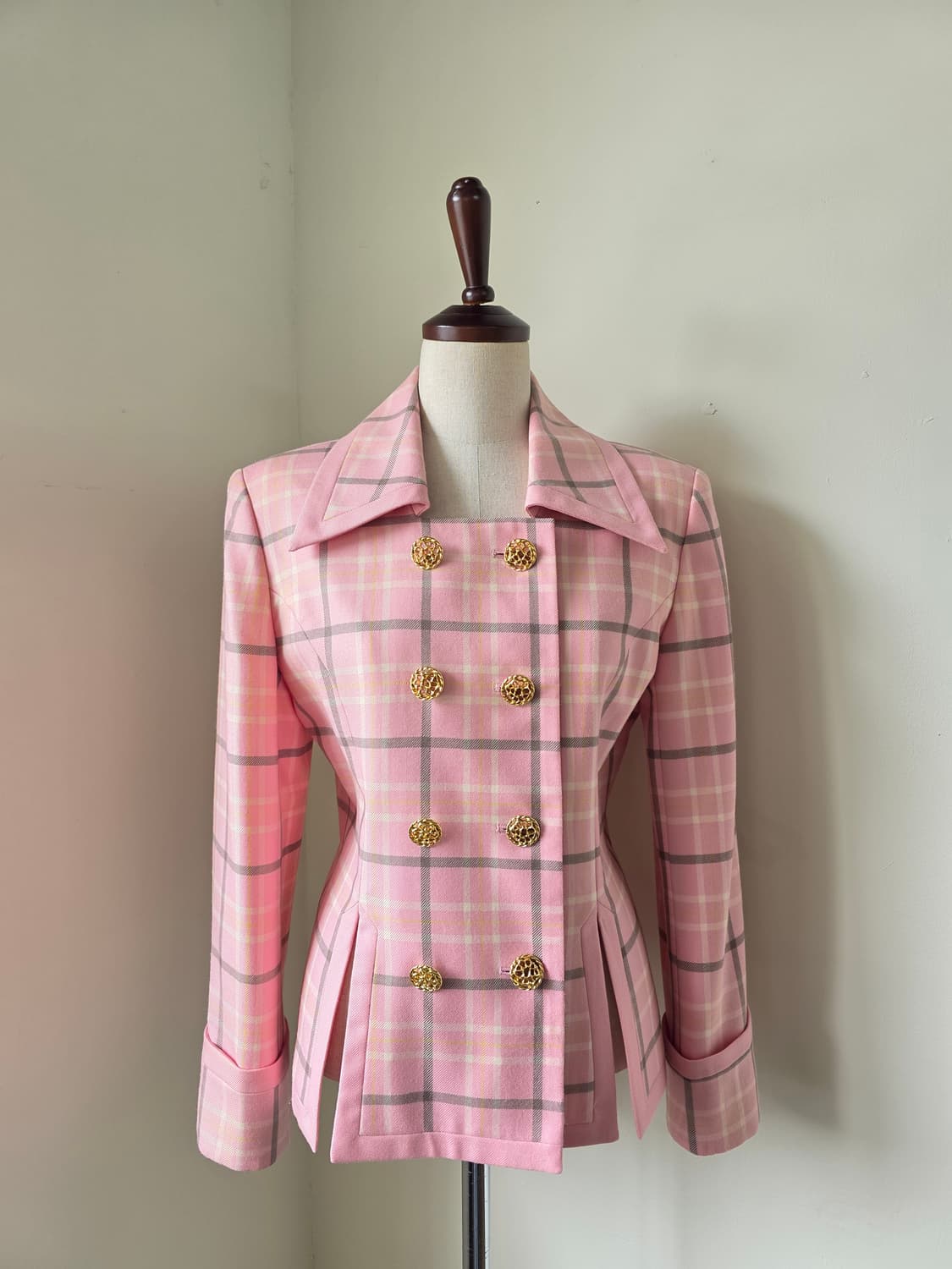 사랑스러운 핑크 체크 금장 자켓입니다. 독특한 금장 단추 디테일로 고급스러움을 더했습니다. 허리 라인이 들어가 있어서 날씬해보이는 효과가 있어요. 어깨단면41/가슴단면48/소매57/총장59 울100/안감 큐프라 ⚘️사진의 경우 날씨나 조명, 각도 등에 따라 색상이 다르게 보일 수 있습니다. ⚘️사이즈는 단면으로 측정되며 측정 방법, 위치 및 재는 사람에 따라 1~3cm 정도의 오차가 발생할 수 있습니다. 그로 인한 교환, 환불은 되지 않으니 참고해주세요. 5만원 이상 구매 시 무배 교환, 환불❌️