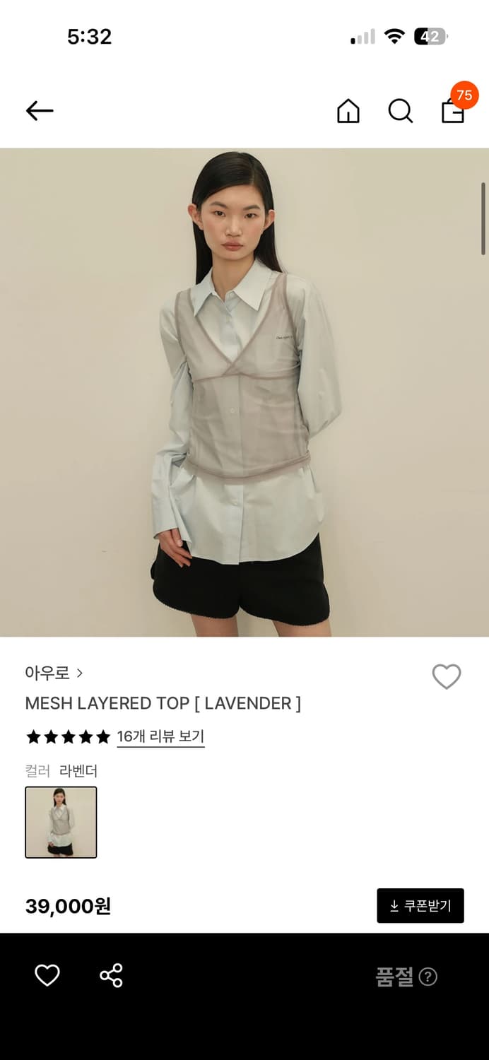 아우로 mesh layered top [ lavender, cream] 구매 후 한번도 못입고 보관중입니다 색상 두 종류 중 구매 원하시는걸로 하시면 됩니다 정가 39000