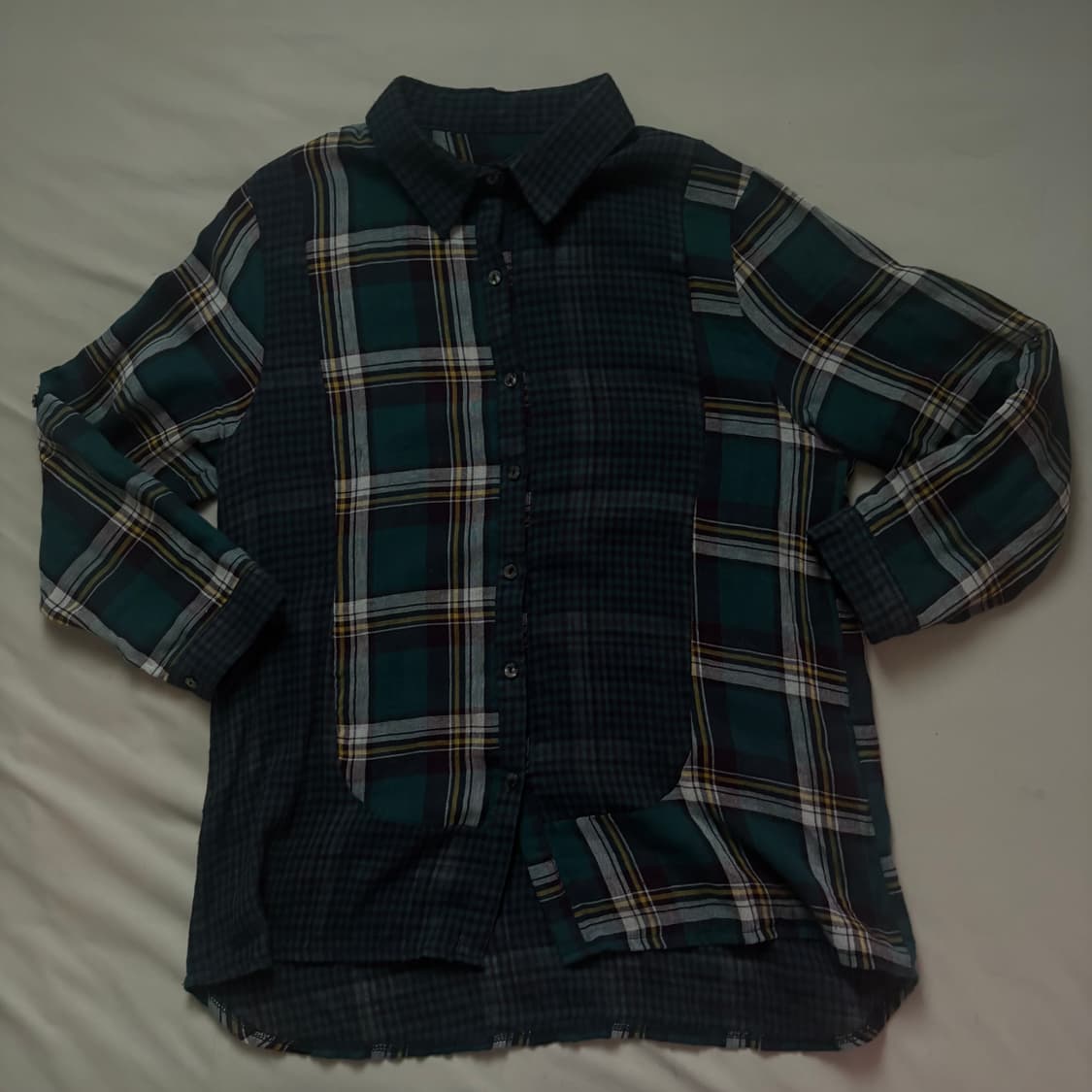 시골 농부의 느낌이 물씬나는 제품입니다. 다른 두 체크패턴이 조화를 이루고 있고, 소매 쪽 접어서 고정이 가능하게 되어있어 활동성을 높여줍니다. 사이즈(cm) - 총장:71.5 가슴:52.5 어깨:42.3 소매:55.5 약간의 사용감 (상품구매시 모든 의류는 세탁되어 배송됩니다.)