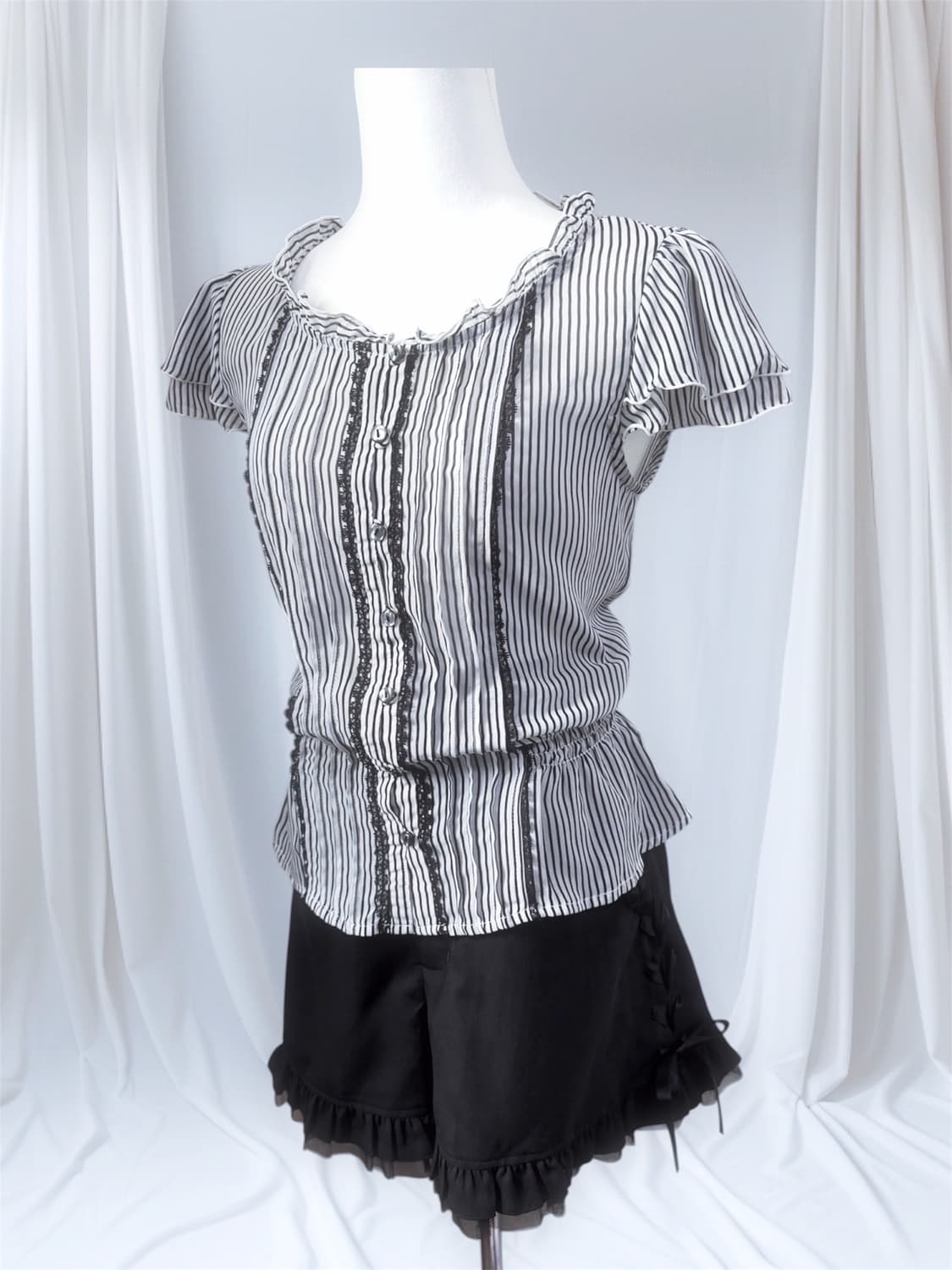 ୨୧ ruffle sleeve striped top ୨୧ 귀여운 포인트가 많은 스트라이프 탑입니다 ᐧ༚̮ᐧ price: 2.6 사이즈 및 구매 문의는 채팅 보내주세요 ♡