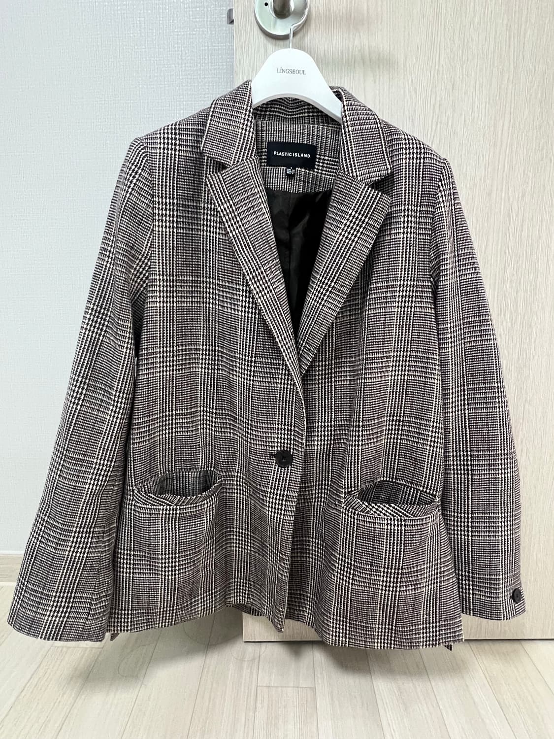플라스틱아일랜드 체크 블레이저입니다 무난하게 여기저기 코디하기 좋아요 손이 잘 가지 않아서 판매합니다