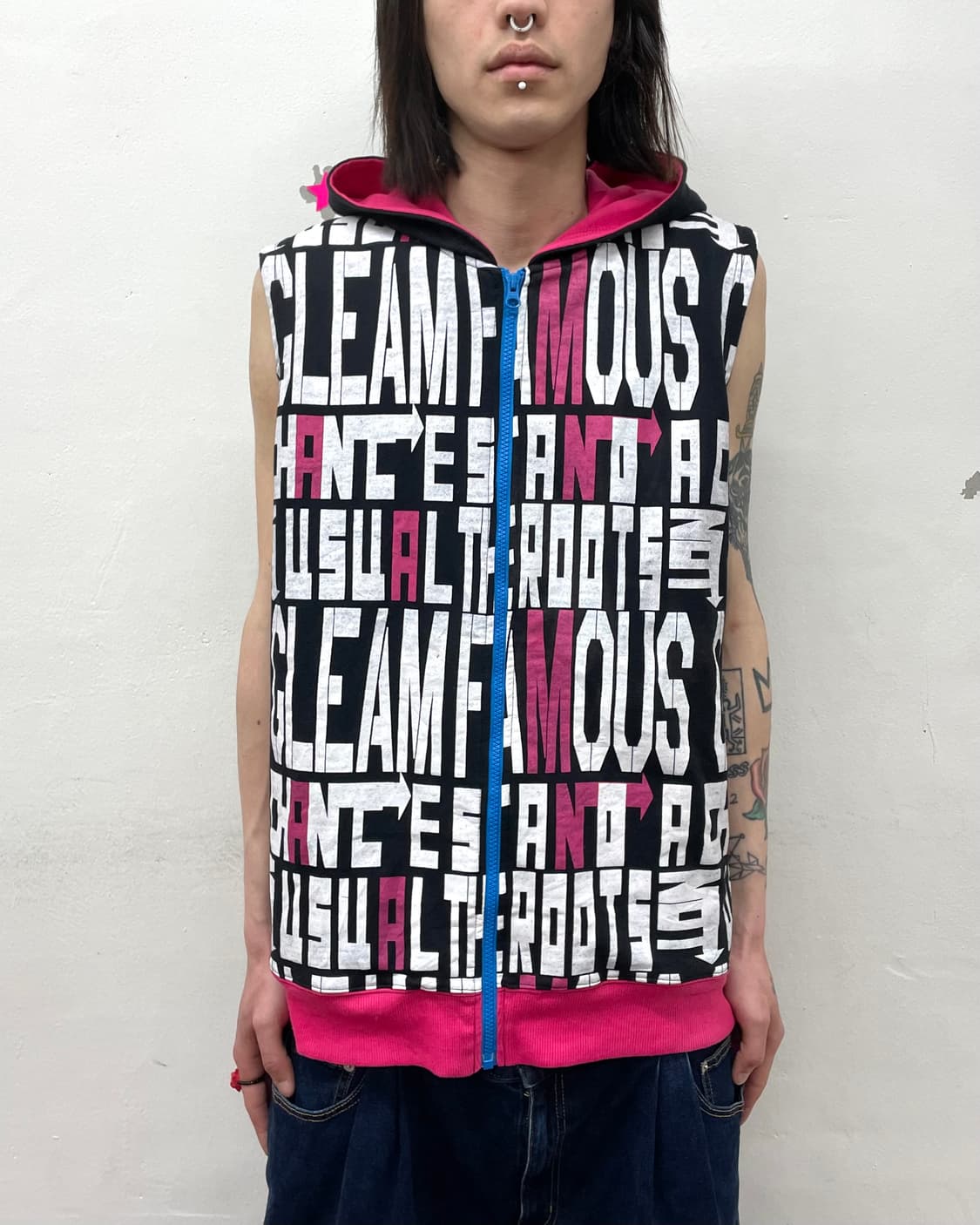 Retro lettering multi-hooded vest