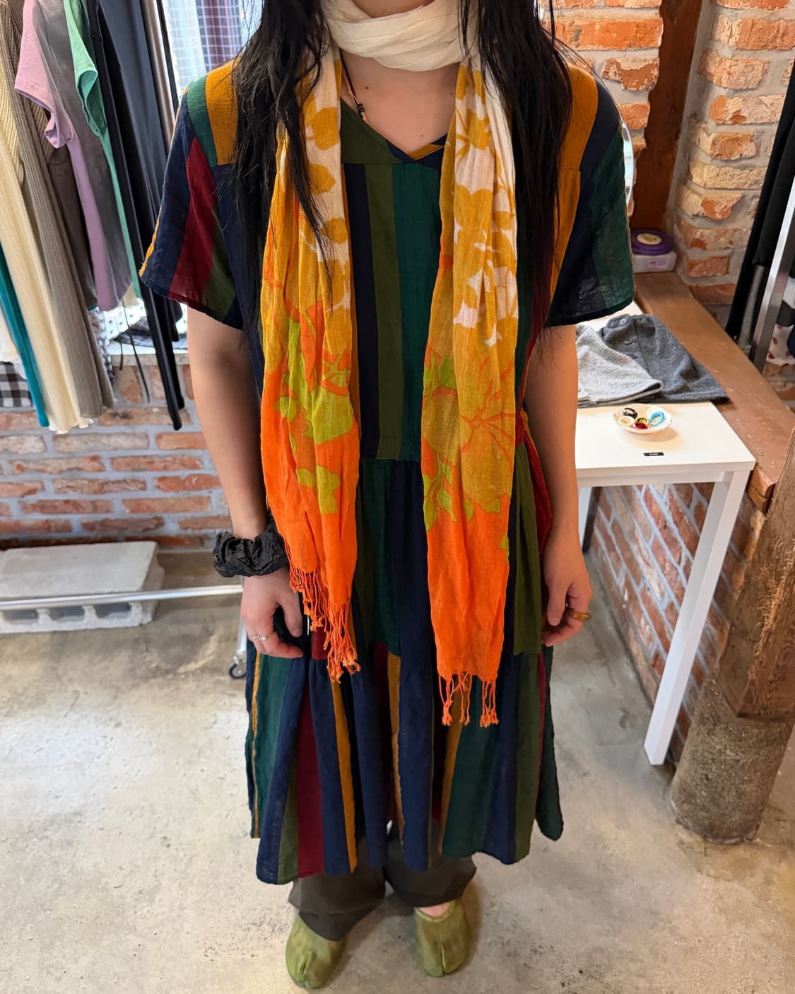 꽃무늬주황스카프 태슬제외 총장 182 너비 57 가격 27,000
