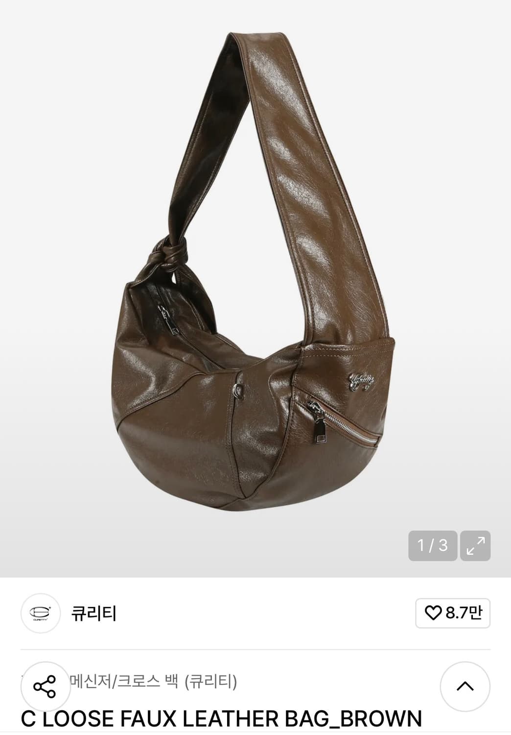 큐리티 c loose faux leather bag brown 입니다 택 안뜯은 새상품이에요 가방이 많아서 판매합니다! 정가 109000, 현재 품절