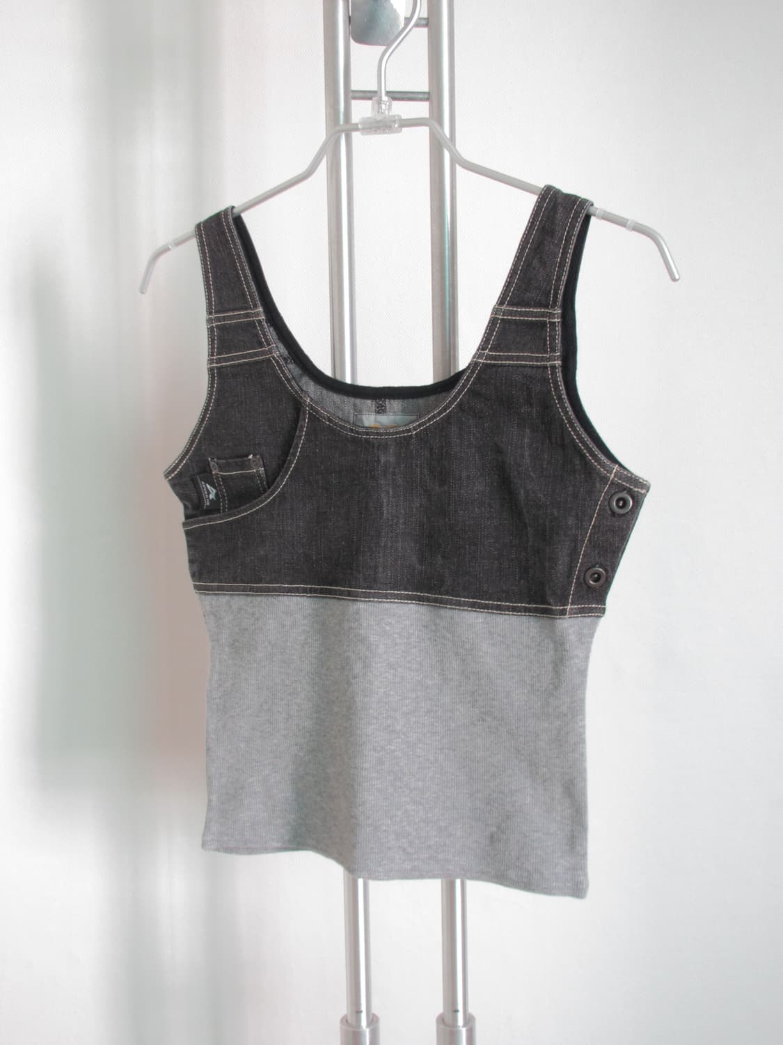 SIZE : 가슴단면 39 총장 47 PRICE : 37,000 ⠀ - 코튼 원단으로 제작된 슬리브리스입니다. 데님과의 배색이 멋스럽습니다. 작은 포켓과 금속 단추 포인트도 매력적이네요. 신축성 존재하나, 사이즈가 작아 xs-s사이즈 추천드립니다. 양호한 상태 유지중이며 데님부분 워싱감 존재합니다.