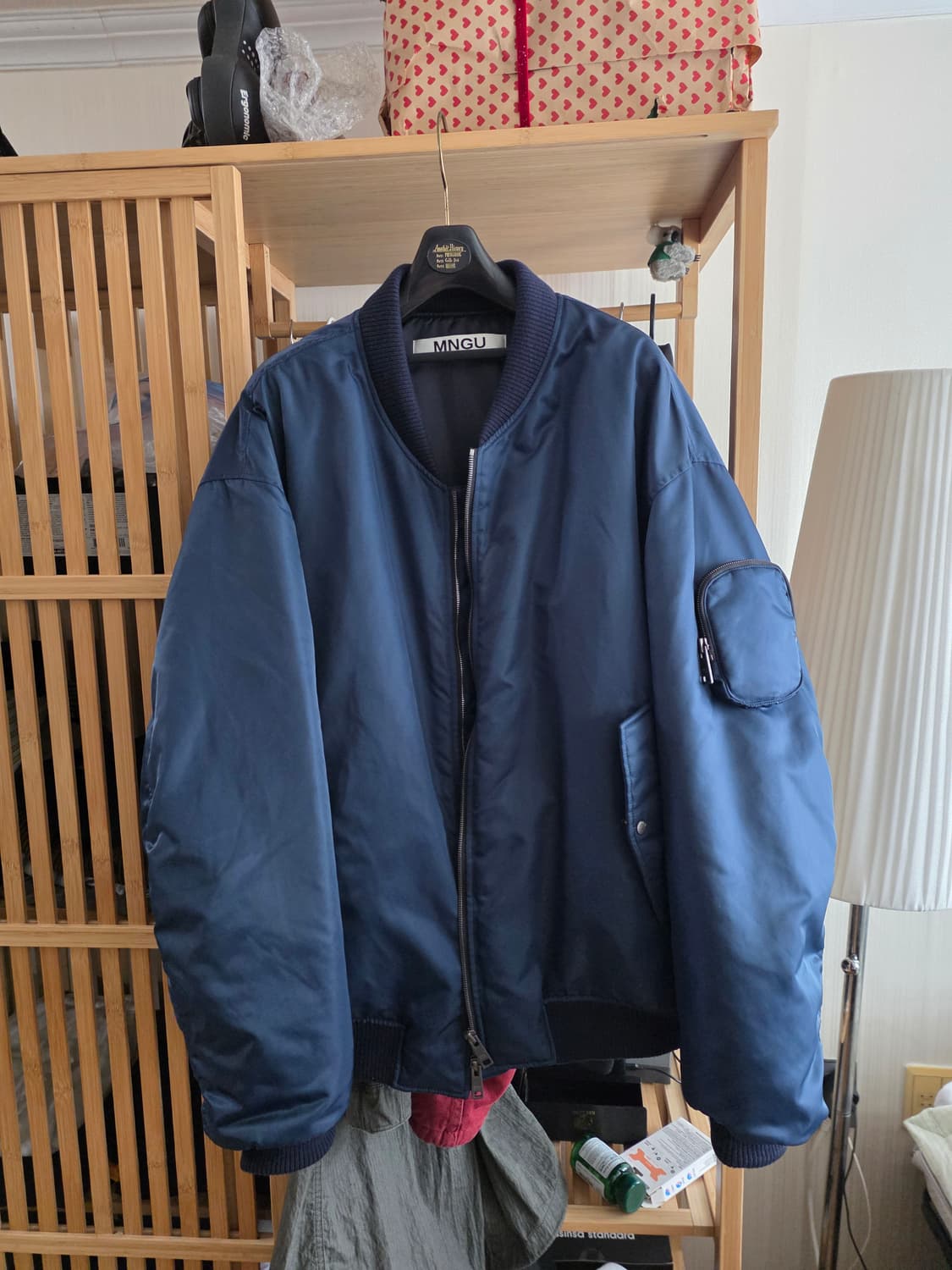 깔끔한 네이비 색상의 MNGU ma1 예요 라지 사이즈입니다 100% 나일론 소재로 가볍고 편하게 입기 좋아요 105입는데 오버핏 나옵니다. 몸 좋은 분들도 충분히 잘 맞으실 듯 합니다. 상태 아주 좋습니다.