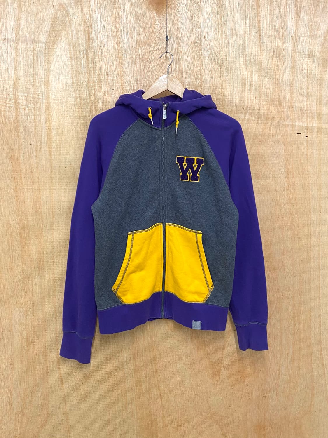 INFORMATION DETAIL - 네셔널 스포츠웨어 브랜드 나이키의 제품 - NCAA의 워싱턴 허스키즈의 팀 어페럴 - 귀여운 색조합의 배색과 와펜 자수가 특징 CONDITION - 8/10 SIZE - 어깨: 가슴: 52 옆목점~소매: 83 총길이: 67 (카라포함, cm기준) (55모델 착용, 표기사이즈 S)
