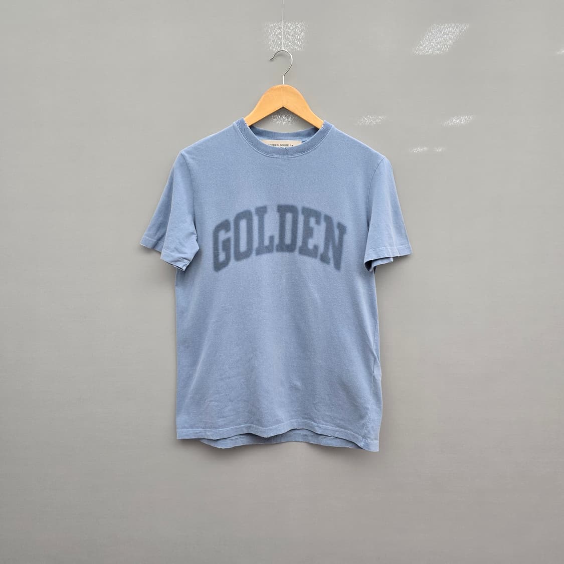 하늘색 골든구스 반팔 티셔츠입니다. 전면에 골든구스 로고가 크게 프린팅 되어있어 포인트 주기 좋습니다. 전체적으로 자연스러운 워싱이 들어가 유니크하면서도 고급스러운 느낌을 줍니다. 옷 상태는 사진과 같이 컨디션 너무 좋습니다. 사이즈는 xs 입니다 가슴단면 52 기장 65 정도 나오네요. 기재된 치수와 평소 입는 비슷한 카테고리 옷의 치수를 비교해 보시는게좋습니다. 참고해주세요.