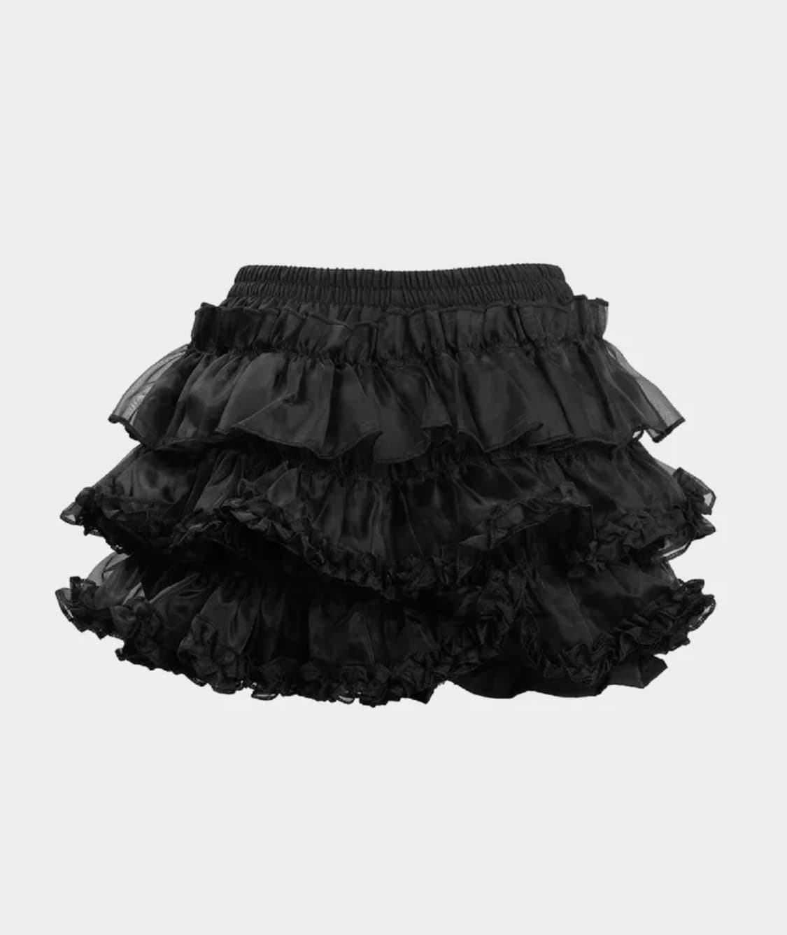 러프넥 레이어드 스커트 블랙