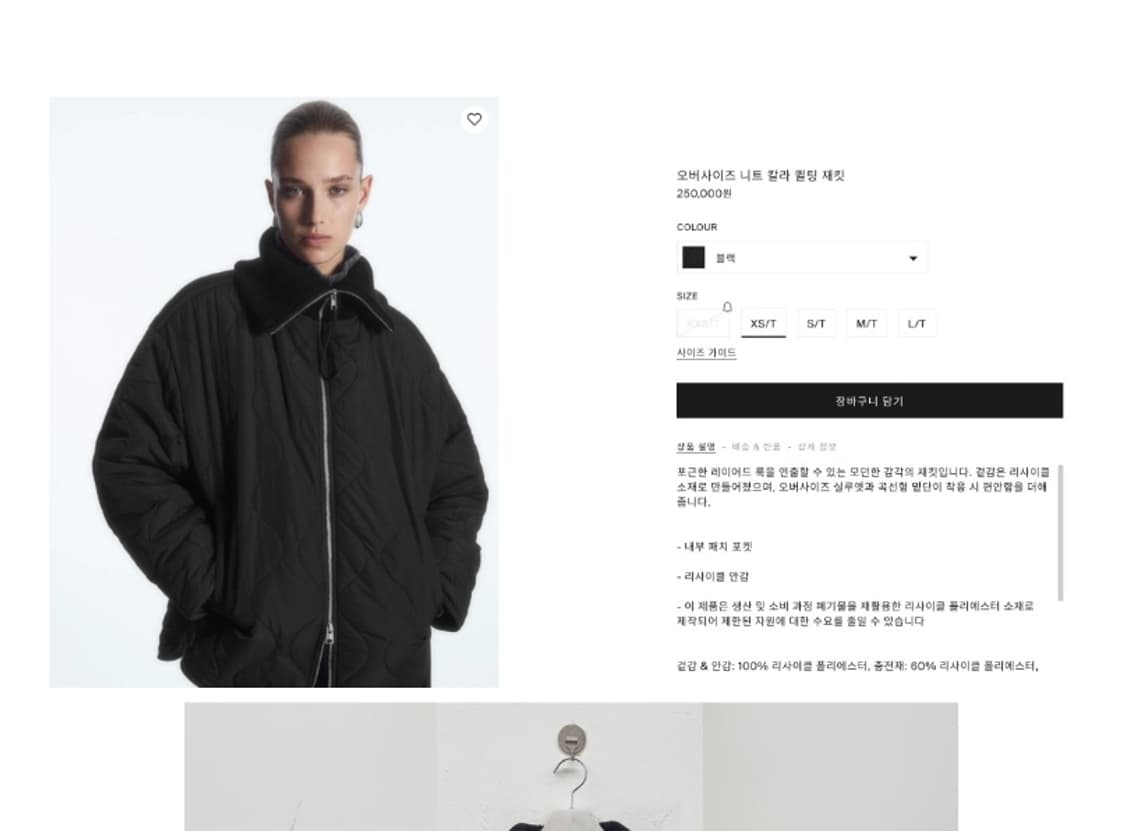 • 코스 COS 차콜 스컬프티드 울 하프코트 XXS