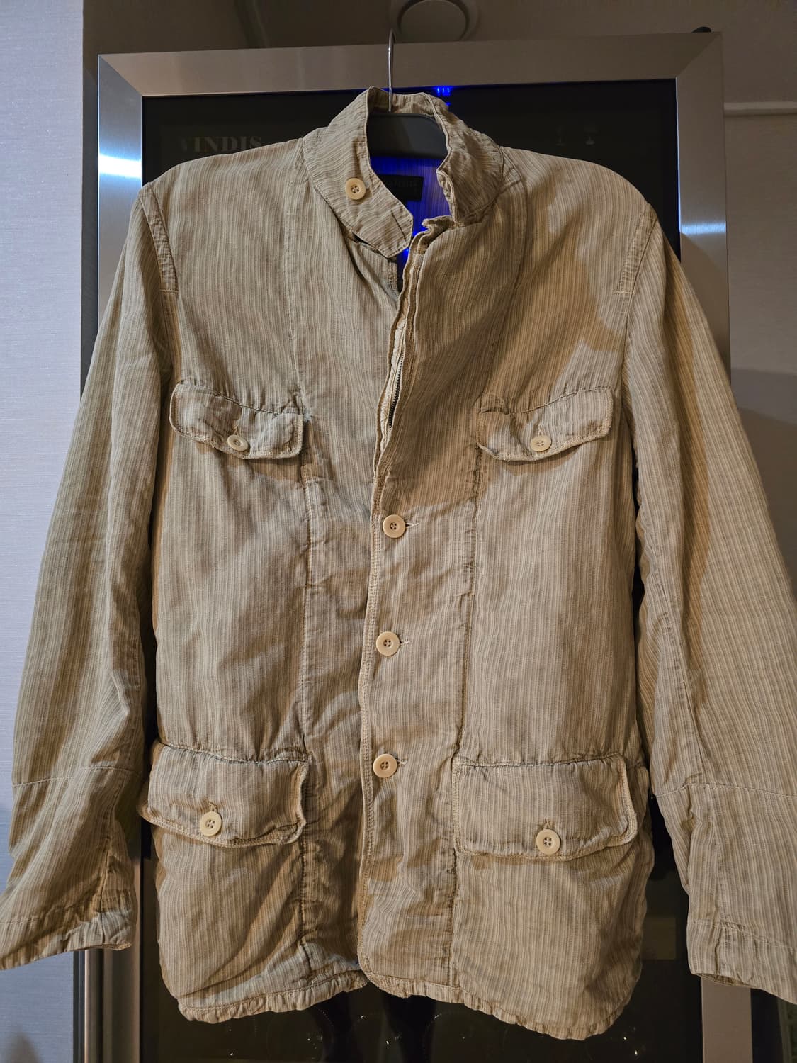 175.77 정도 저스트합니다. 왼쪽 어깨쪽 아주작은얼룩있습니다. 사진참고해주셔요. 트랜짓 마 자켓 M사이즈 판매합니다. 독특한 디자인이라 눈에 띄는 옷입니다. 착용감은 있지만, 옷 자체는 튼튼합니다. 별도 문의 없으시면 바로 안전결제 부탁드려요!