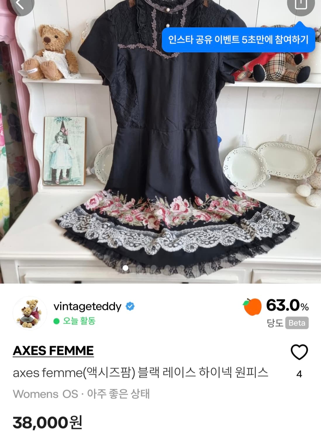 엑시즈팜(axes femme) 크림 쉬폰 레이스 원피스