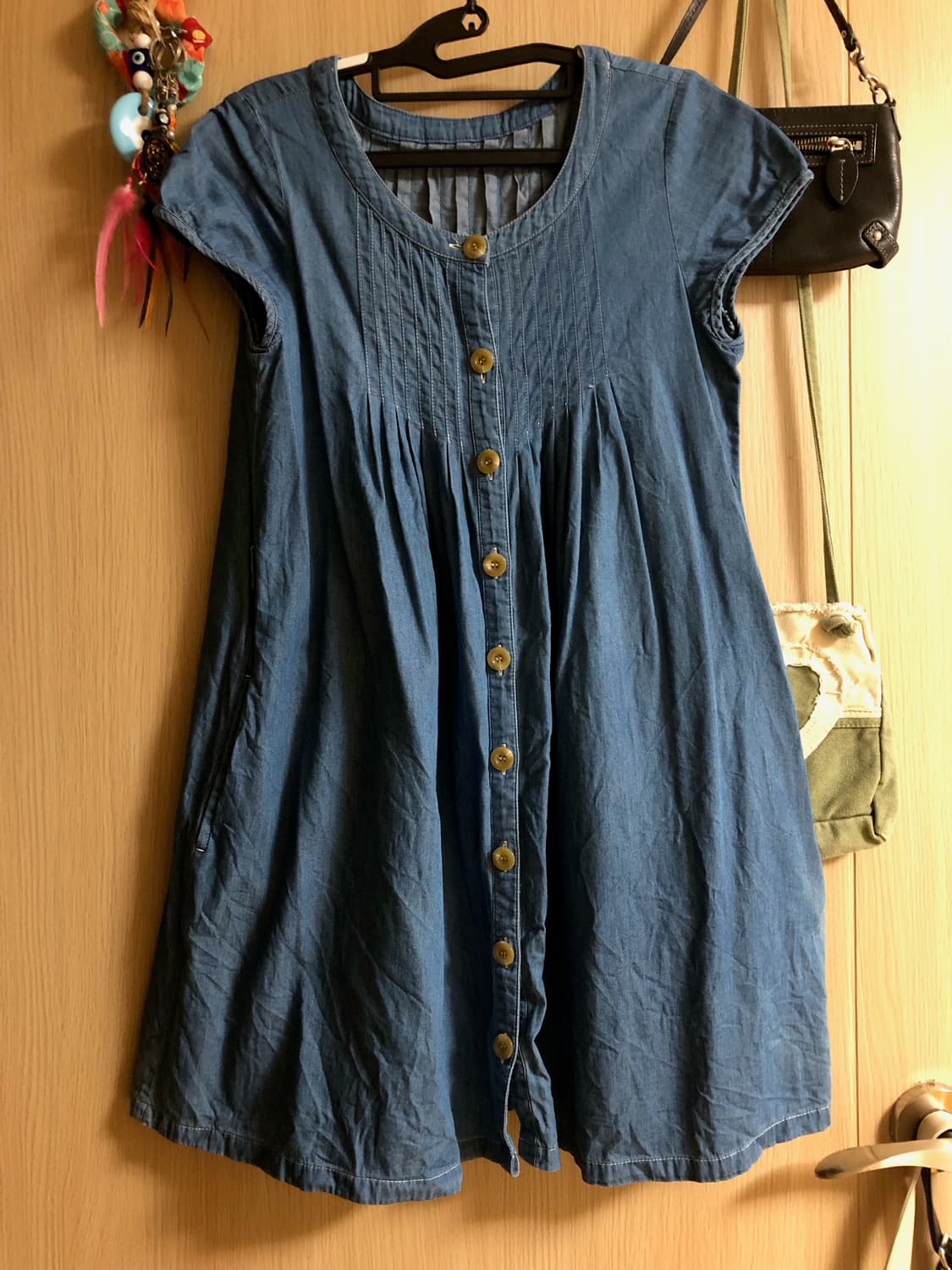 모리 데님 핀턱 원피스