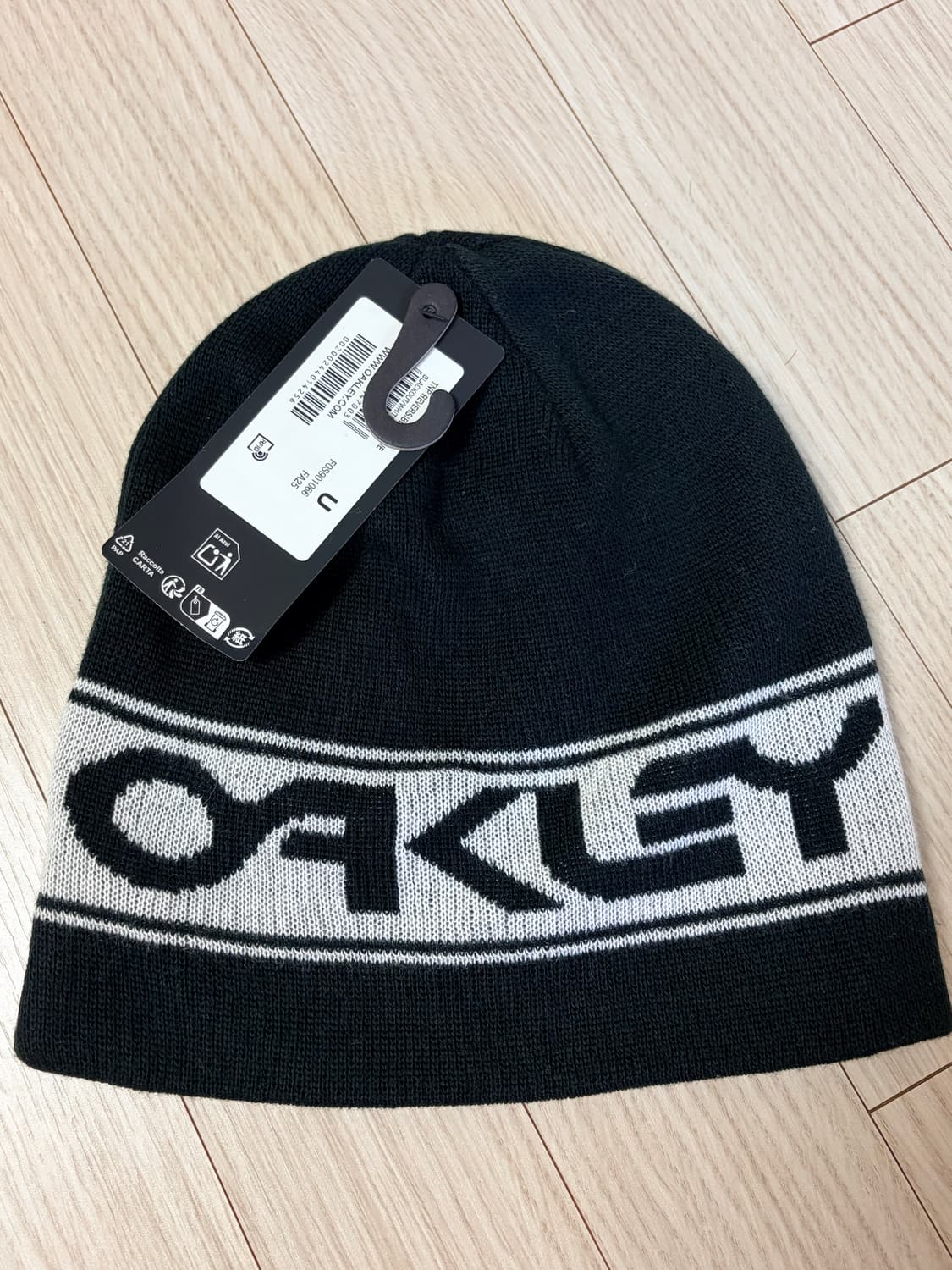 오클리 블랙 화이트 로고 비니