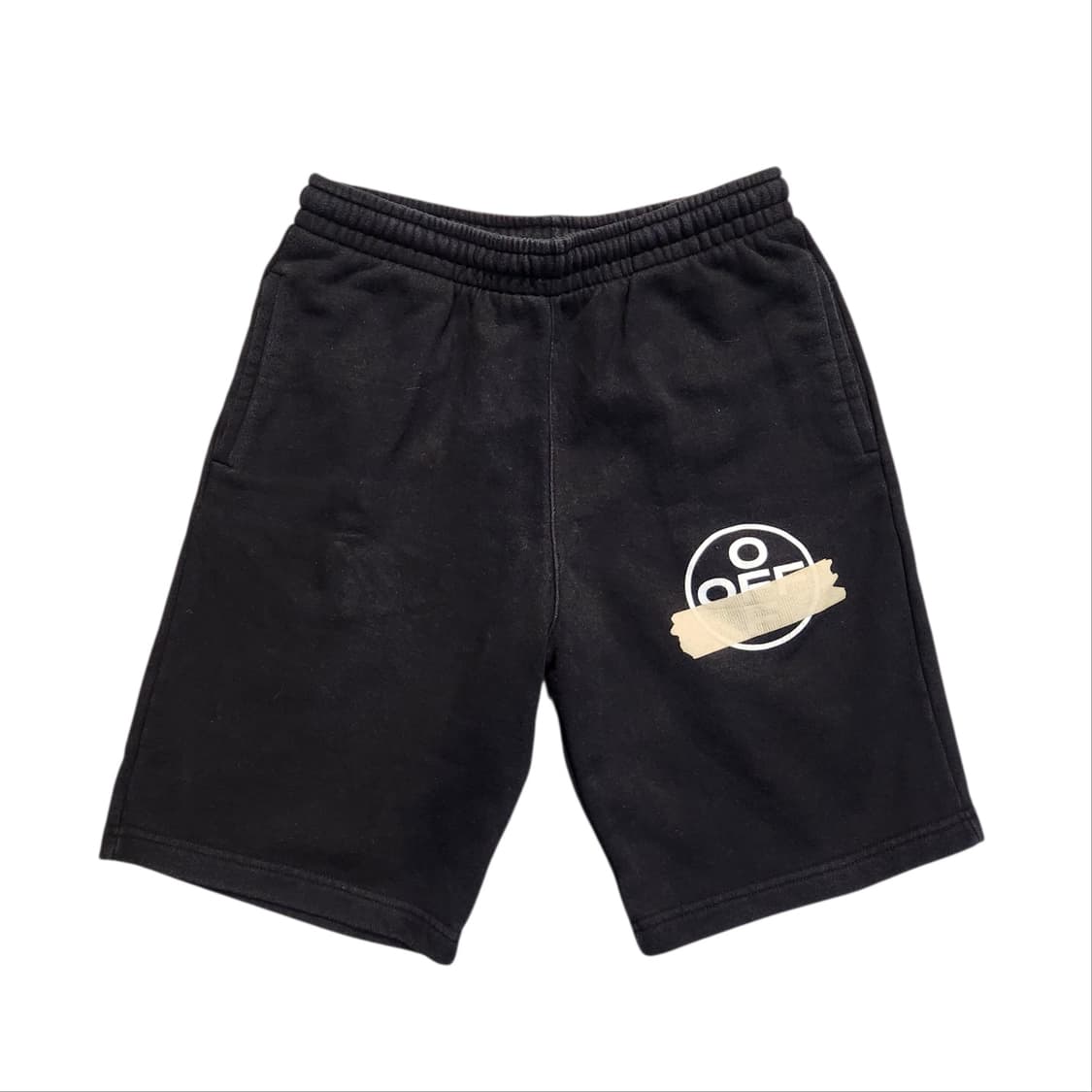 오프화이트 테이프 애로우 팬츠입니다. 앞뒤로 로고 문양이 포인트가 됩니다. 여름에 무난하고 예쁘게 입으실 수 있습니다 😎 따로 문의 없으시면 바로 안전결제해주시면 됩니다! 오프화이트 블랙 반바지 사이즈:M 허리:74cm 허벅지 단면:32cm 밑단:27cm 총장:52cm