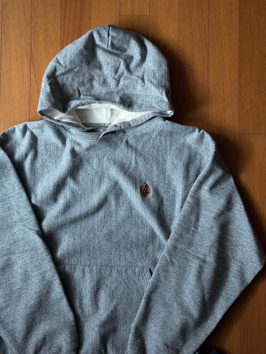 헤리티지플로스 HFC CREST 221 REVERSE HOODIE M사이즈 멜란지 그레이(5%) 입니다. 헤리티지플로스의 대표적인 후드 제품으로 매년 발매되는 디자인입니다만, 본 제품은 안감이 와플 조직으로 되어 있어서 보온성이 좋으며 소장가치도 있습니다. 아끼는 제품이라 웬만하면 소장하고 싶지만, 사이즈가 커서 2~3회 착용 후 보관만 하여서 잘 맞는 분께 드리고자 판매합니다. - 제품명: 헤리티지플로스 HFC CREST 221 REVERSE HOODIE - 사이즈: M - 색상: M.Grey (5%) * 비흡연자이며 향수 사용하지 않습니다.