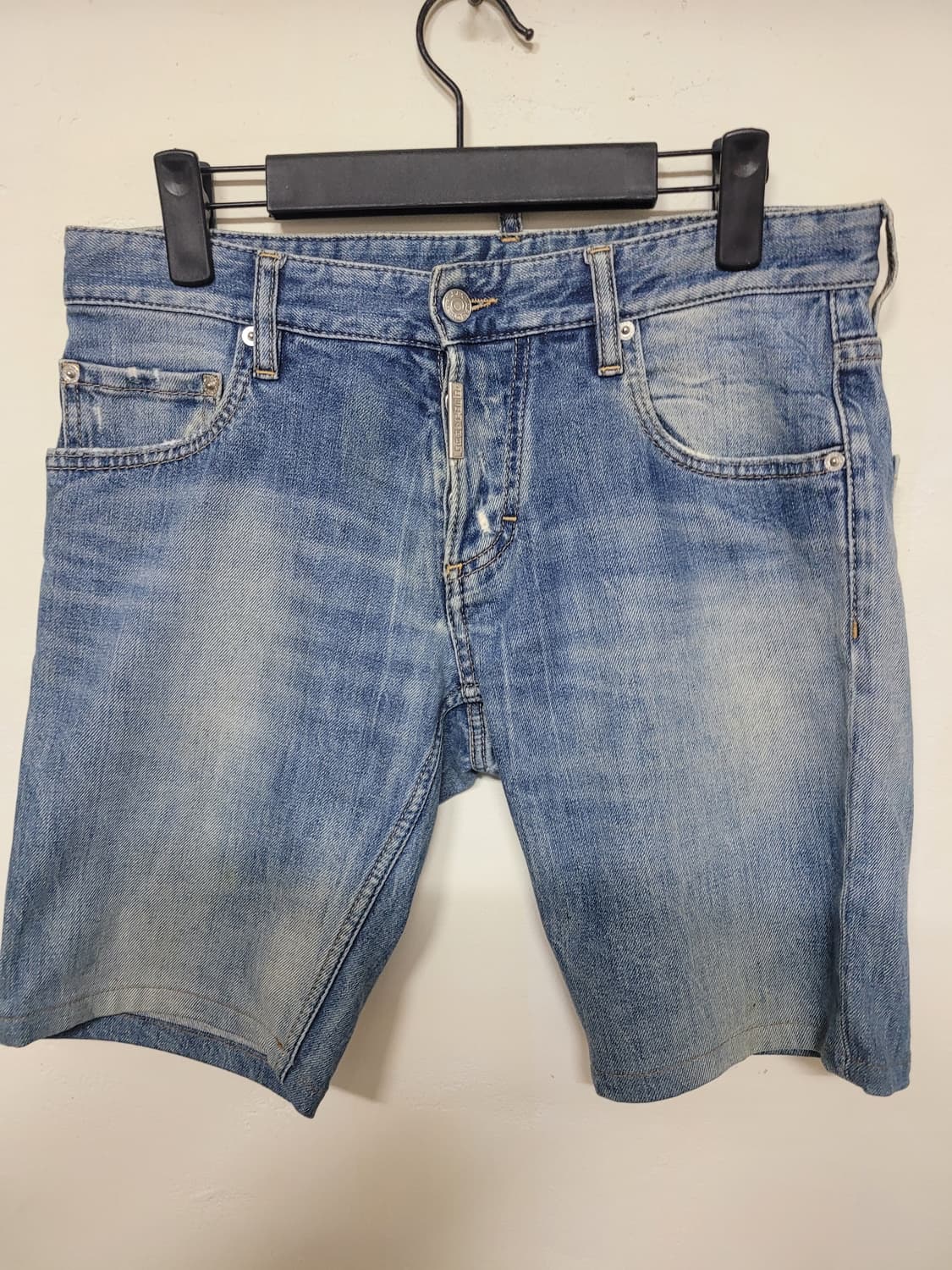 정품 DSQUARED2의 매력적인 데님 반바지예요. 사진에서 보이는 것처럼 빈티지한 워싱과 디테일이 돋보이는 제품입니다. 사이즈는 46이며, 깔끔한 디자인으로 어떤 상의와도 잘 어울려요. 여름철 시원하고 스타일리시하게 착용하기 좋은 아이템입니다