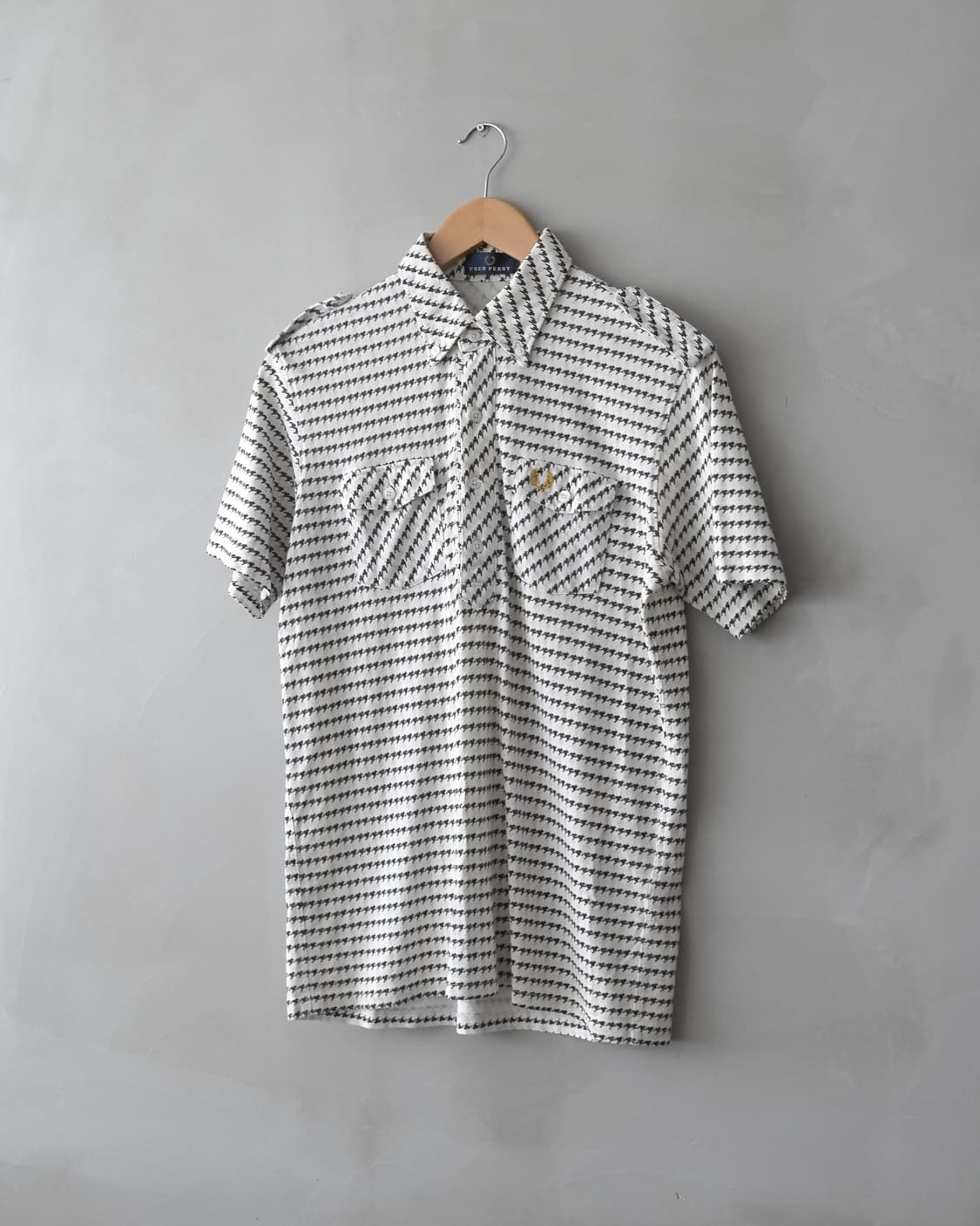 프레드 페리 하운드 투스 PK 셔츠 소소한 사용감의 컨디션 실측 팔 23 / 어깨 47 / 가슴 53 / 총장 71 실측 대비 맨즈 M-L 사이즈
