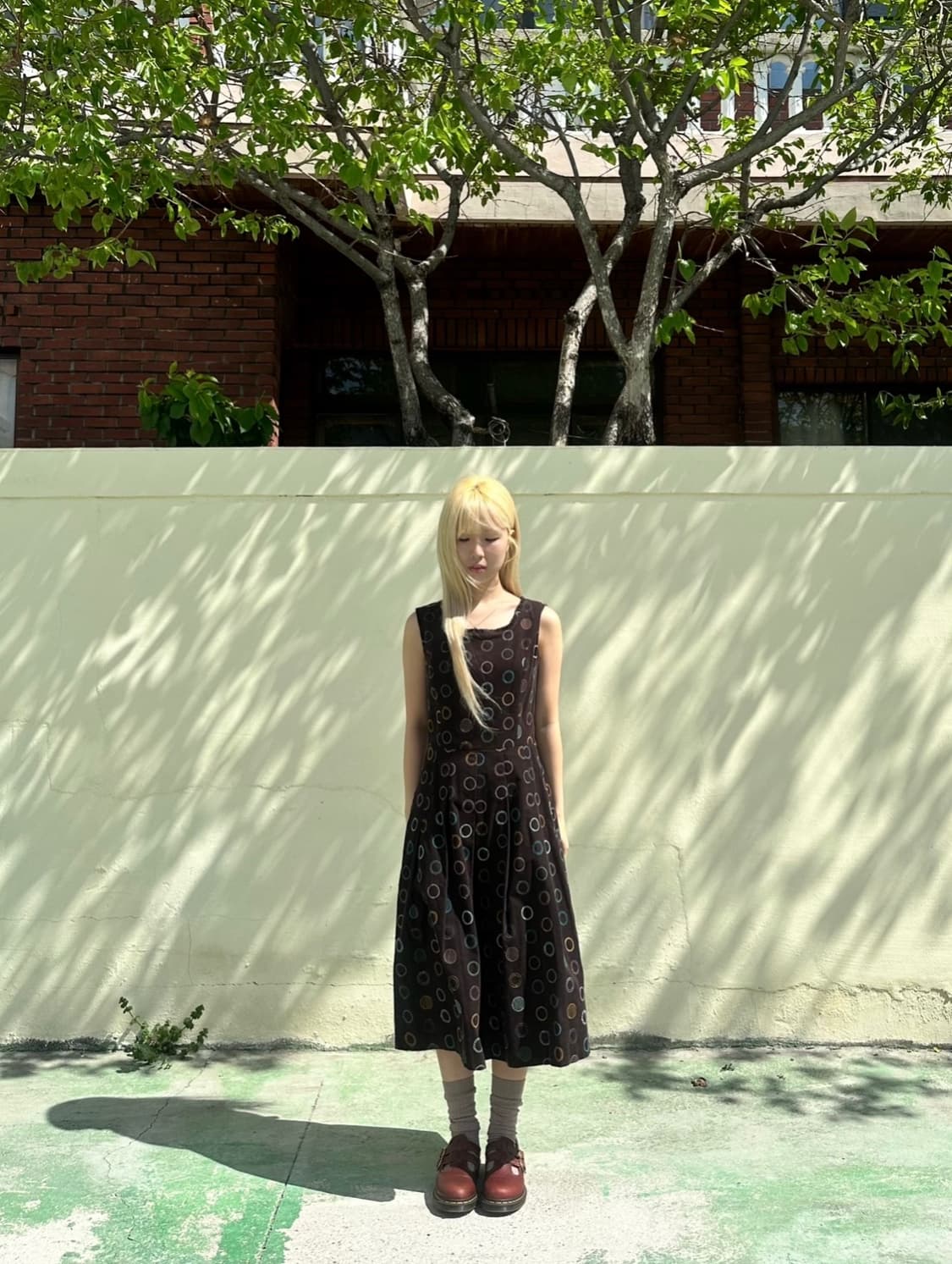 Corduroy Polka Dot Embroidered Dress 코듀로이 도트 자수 원피스 - Size (cm) 총장 110 어깨 34 허리 34 가슴 44 - Condition : A - Price : ₩42,000 🧾 구매 전 안내 (필독)