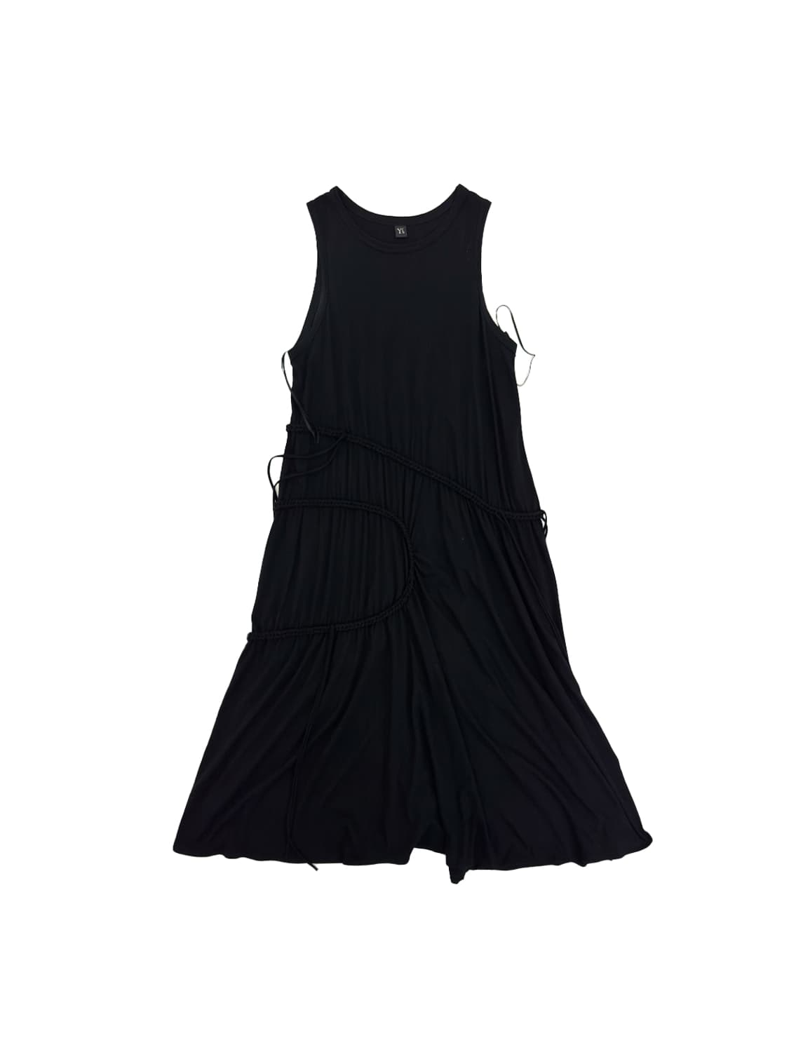 COLOUR Black MATERIAL Cotton SIZE 어깨 32 가슴 52 총장 118 (cm) DESCRIPTION -Y’s 블랙 컬러 슬리브리스 A라인 맥시 드레스 -전면을 타고 흐르는 꼬임 디테일이 적용되어 자연스럽게 모아지는 입체적인 셔링 연출 -하단으로 갈수록 자연스럽게 퍼지는 비대칭 헴라인이 입체적인 움직임 연출 -슬리브리스 구조로 다양한 이너와 레이어링 가능한 활용도 높은 피스 -절제된 블랙 컬러와 구조적 패턴으로 완성되는 Y’s 특유의 아방가르드 무드 -특별한 하자 없는 중고상품 자연스러운 사용감 존재함
