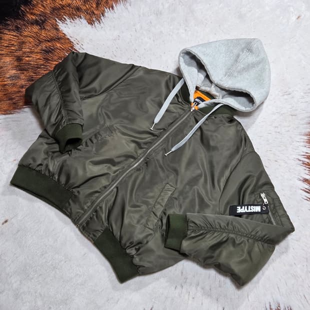 빈티지 후드 카키 항공 패딩
