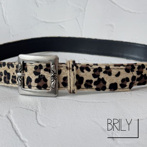 • Oribell 호피 카우 송치털 골드 라운드 버클 웨스턴 벨트
