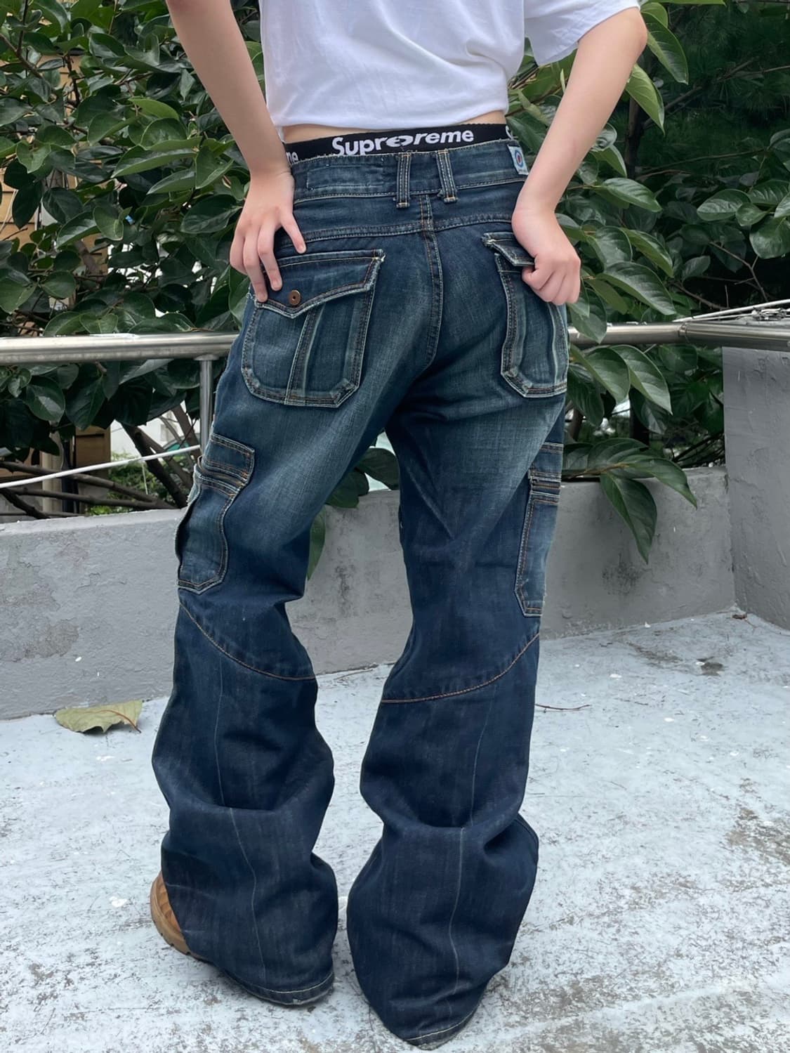 Washed Detail Denim Cargo Pants 탄탄한 재질감과 워시 디테일 루즈한 사이즈의 데님 카고팬츠 입니다 -허리 34inch 허벅지 34cm 기장 107cm 밑단 28cm -Price : 63,000
