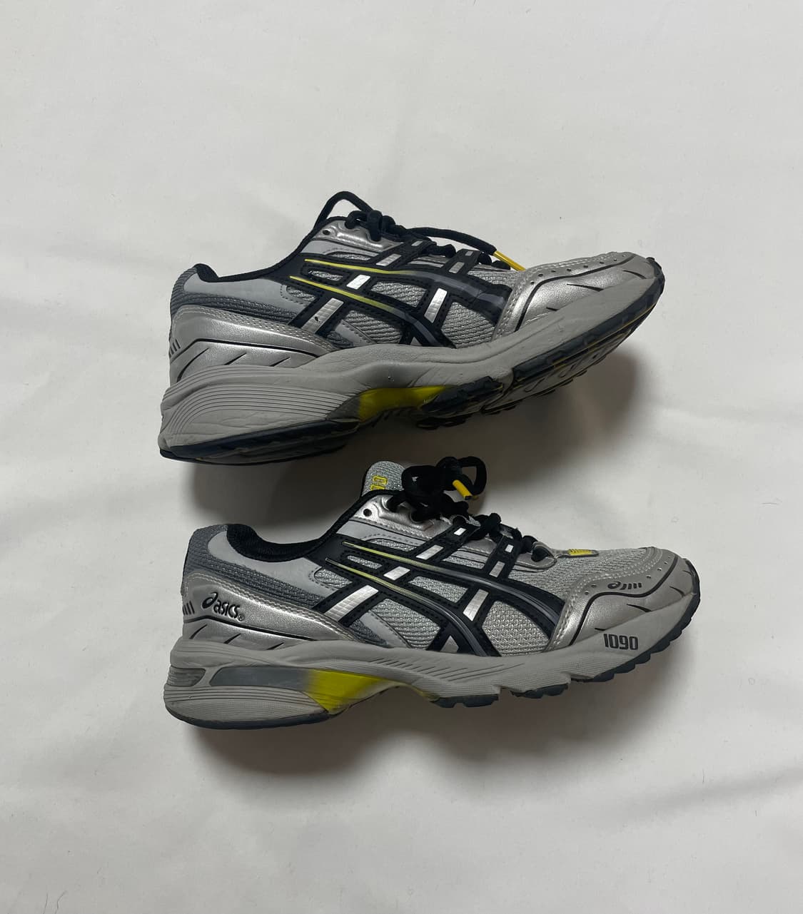 아식스 GEL 1090 미드 그레이 블랙 판매합니다. 표기 사이즈 235mm, 착용감은 사진으로 확인 부탁드립니다. **중고 거래 특성상 구매후 교환이나 환불은 불가합니다.