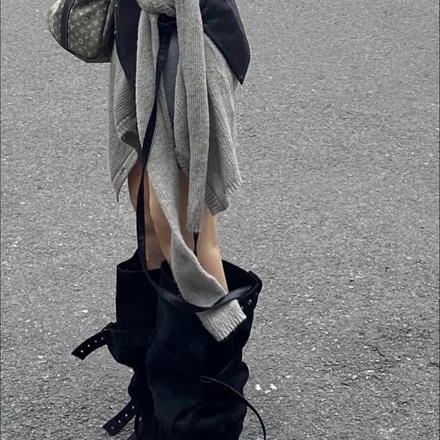 게이트리스 싸이하이 버클 스웨이드 롱부츠 블랙 M(235 240 245)